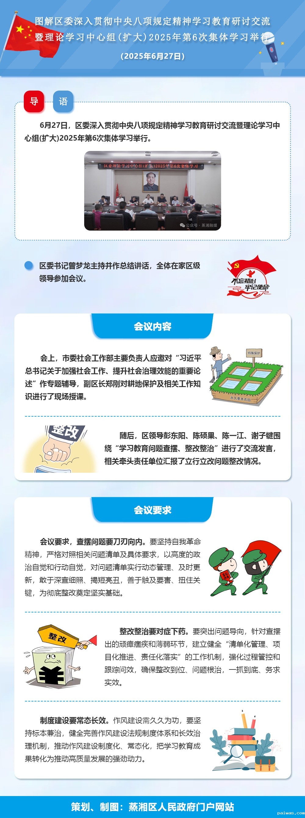 图解:区委深入贯彻中央八项规定精神学习教育研讨交流暨理论学习中心组(扩大)2025年第6次集体学习举行