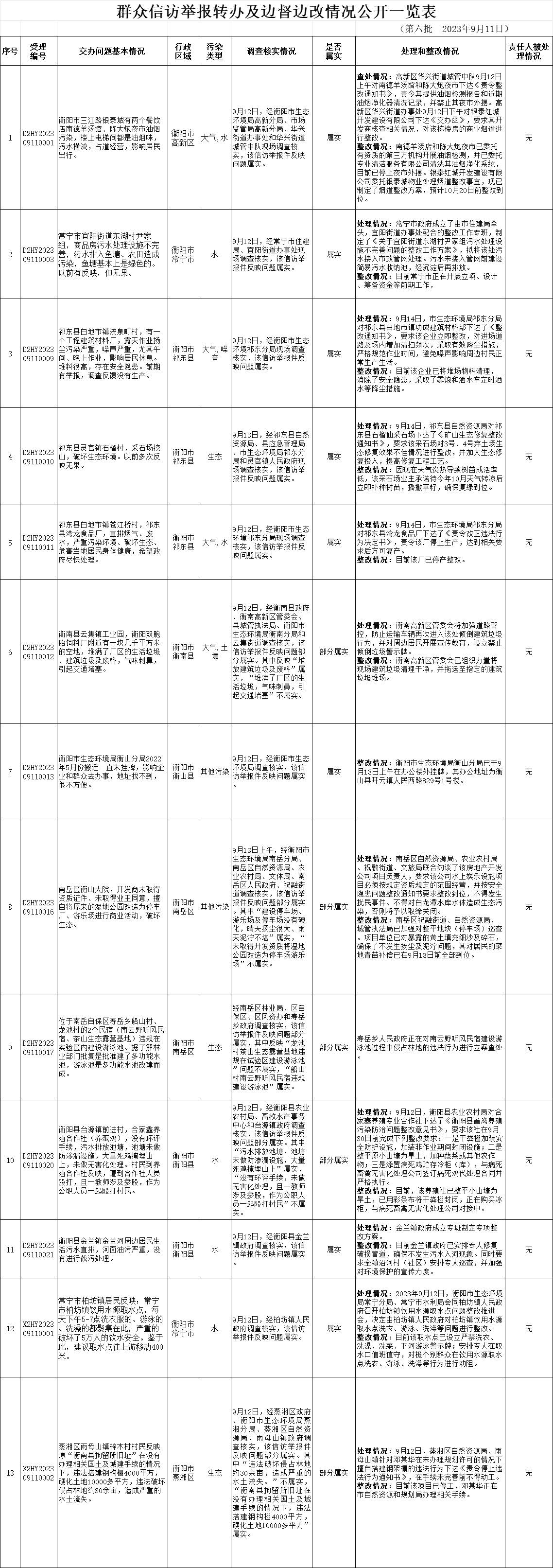 群众信访举报转办及边督边改情况公开一览表(第六批 2023年9月11日)