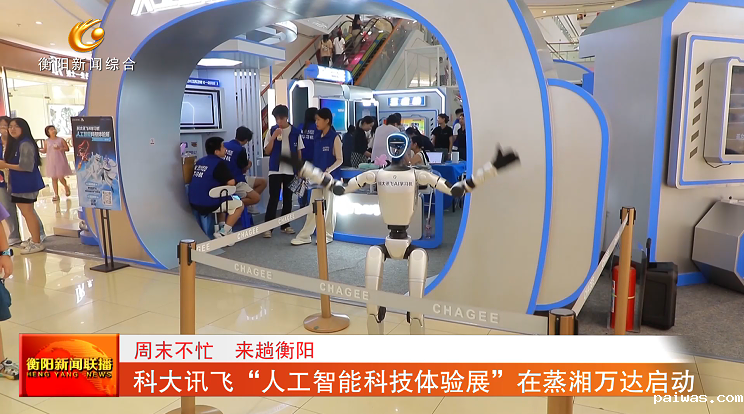近日,由科大讯飞举办的"人工智能科技体验展"在衡阳蒸湘万达广场一楼向市民开放。在入口处,一台能够根据语音指令,与观众进行语音互动,展示舞蹈动作技巧的AI机器人正在进行互动展示,迎接八方来客。在展览内部,设有传音送影、乾坤擂台赛、玉虚三关、太乙变身术、思维拓展等板块内容,通过知识答题、畅想未来,与先贤对话等有趣内容,吸引孩子们的注意。