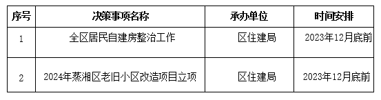 蒸湘区人民政府2023年度重大行政决策事项目录