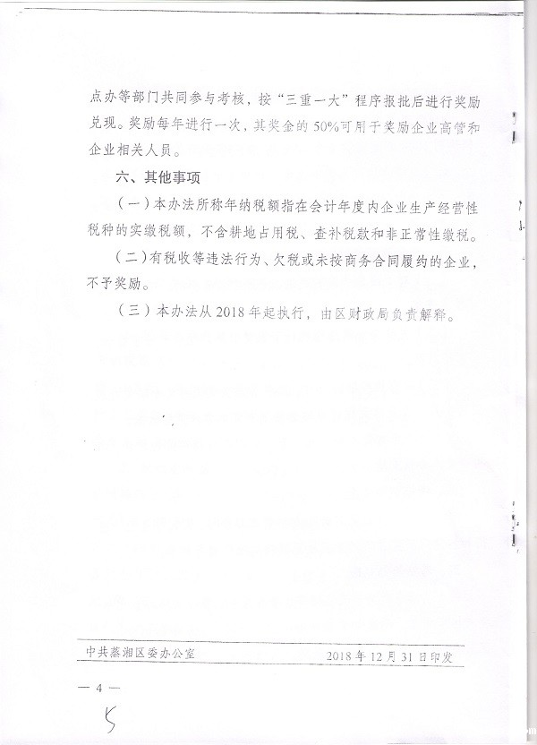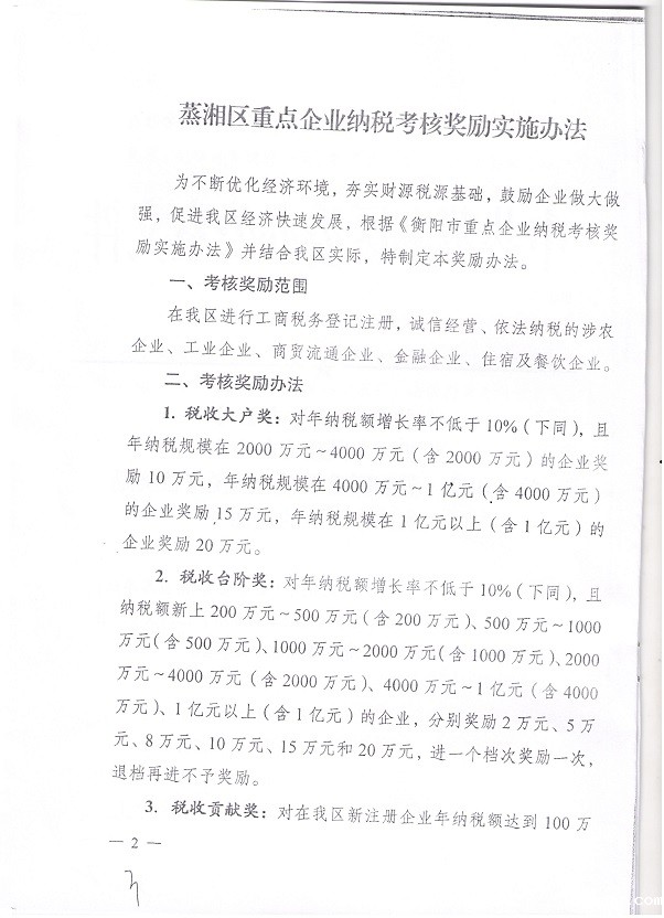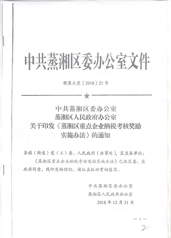 【营商环境—财政政策】蒸湘区重点企业纳税考核奖励实施办法