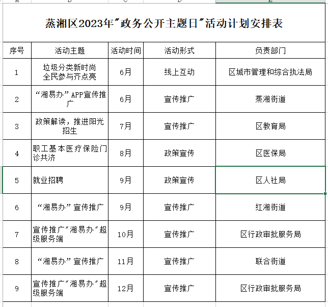 蒸湘区政务公开政务服务领导小组办公室关于印发《蒸湘区2023年"政务公开主题日"活动计划安排表》的通知