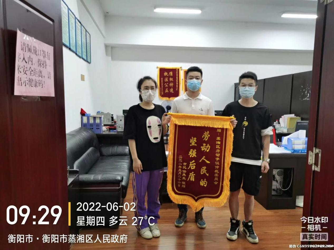 2022年6月2日,任某顶着烈日,专程将一面写有“劳动人民的坚强后盾”的锦旗送到了蒸湘区劳动人事争议仲裁院,表达了其对蒸湘区劳动人事争议仲裁院工作人员的谢意。面对仲裁院的工作人员,任某动情的说:“真的非常感谢你们!为了维护我们劳动者的权益,不厌其烦地做调解工作,而且还督促单位尽快履行协议,使我很快拿到了补偿金,你们是我们的坚强后盾啊!”今后,蒸湘区劳动人事争议仲裁委员会将继续坚持和发展新时代“枫桥经验”,探索纠纷多元化解工作模式,切实让更多劳动纠纷化解在基层,消除在萌芽状态,努力让人民群众在每一起纠纷中都感受到法治的公平与正义。