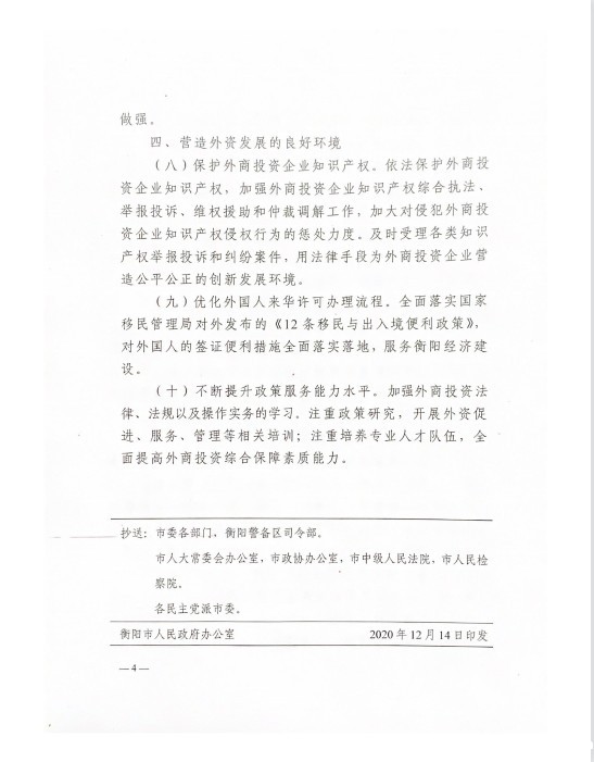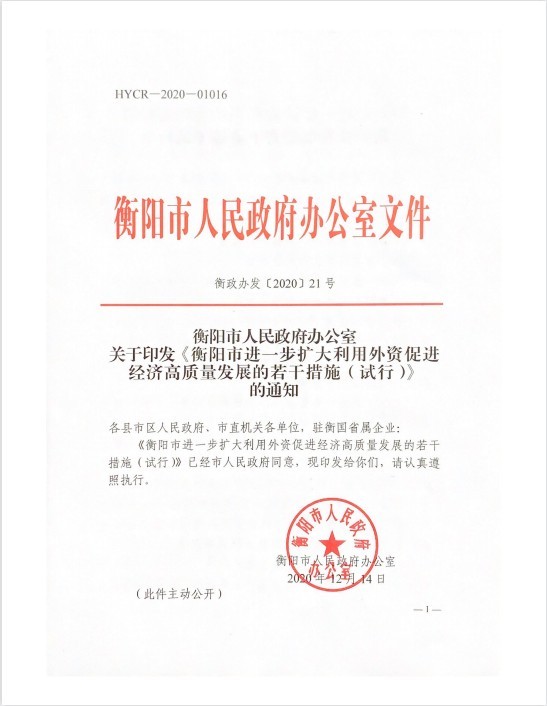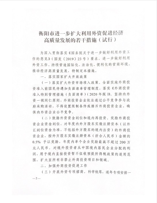 衡阳市进一步扩大利用外资促进经济高质量发展的若干措施