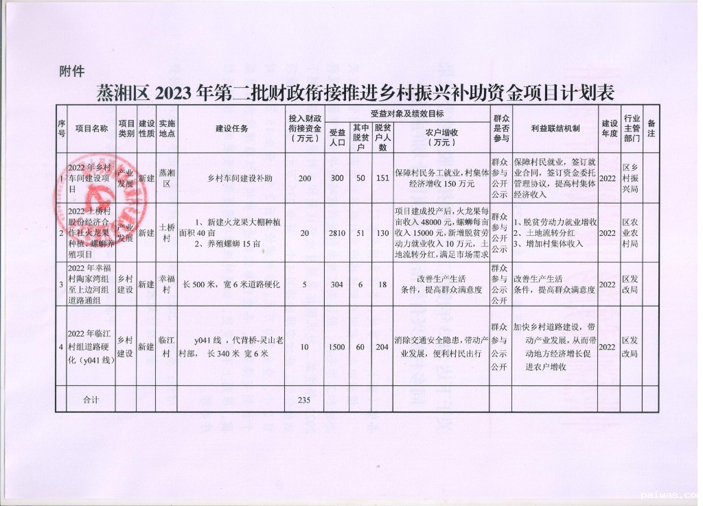 蒸湘区2023年第二批巩固拓展脱贫攻坚成果同乡村振兴有效衔接资金项目计划经中共蒸湘委实施乡村振兴领导小组审定,现将《关于下达2023年度第二批巩固拓展脱贫攻坚成果同乡村振兴有效衔接资金项目计划的批复》予以公开。
