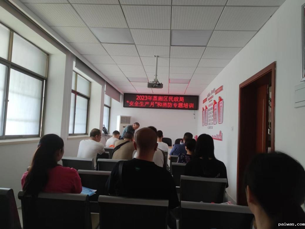 二是进行安全培训,绷紧"思想弦"。区民政局邀请专业人员进行消防安全知识讲座,观看消防安全警示教育视频,学习消防器材的正确使用方法,树立安全发展理念,强化安全责任意识。同时,组织全区养老服务机构安全生产重大事故隐患排查整治2023行动宣讲会,下发《蒸湘区安全生产委员会致全区企业主要负责人的一封信》,签订《企业主要负责人安全承诺书》。