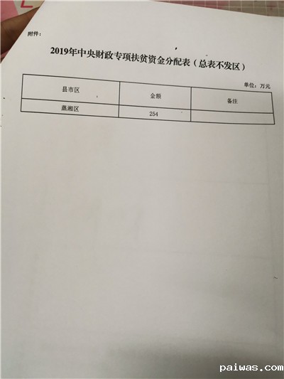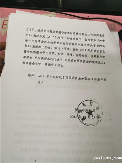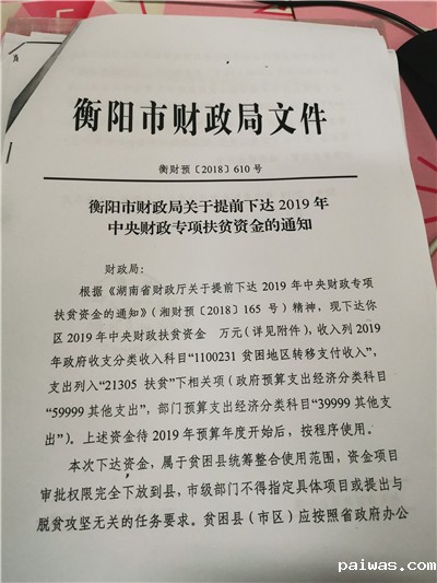 衡阳市财政局关于提前下达2019年中央财政专项扶贫资金的通知