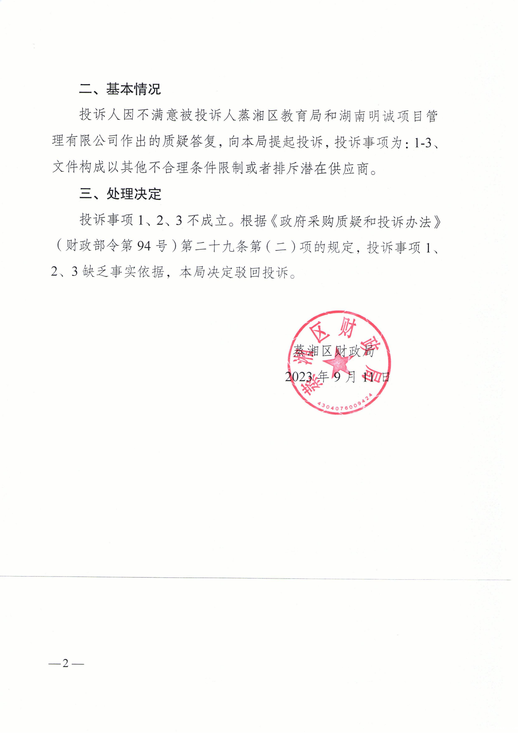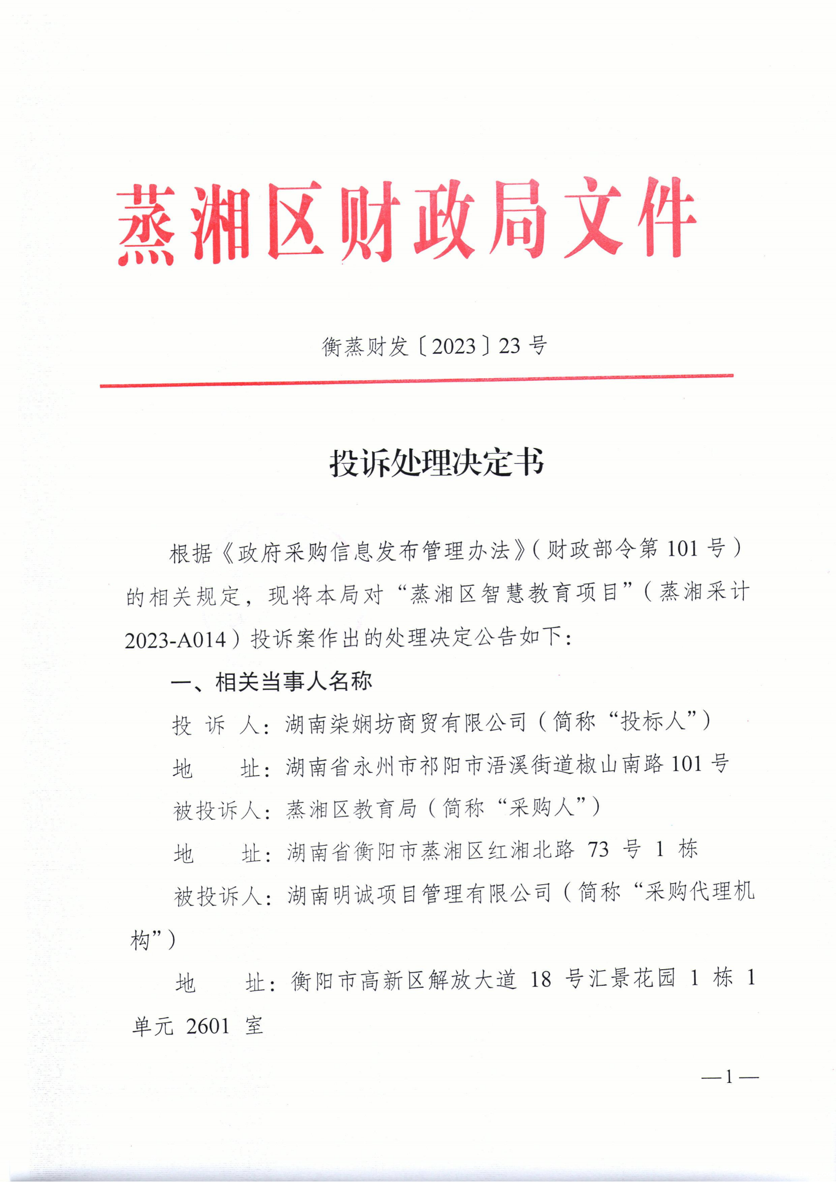 投诉处理决定书