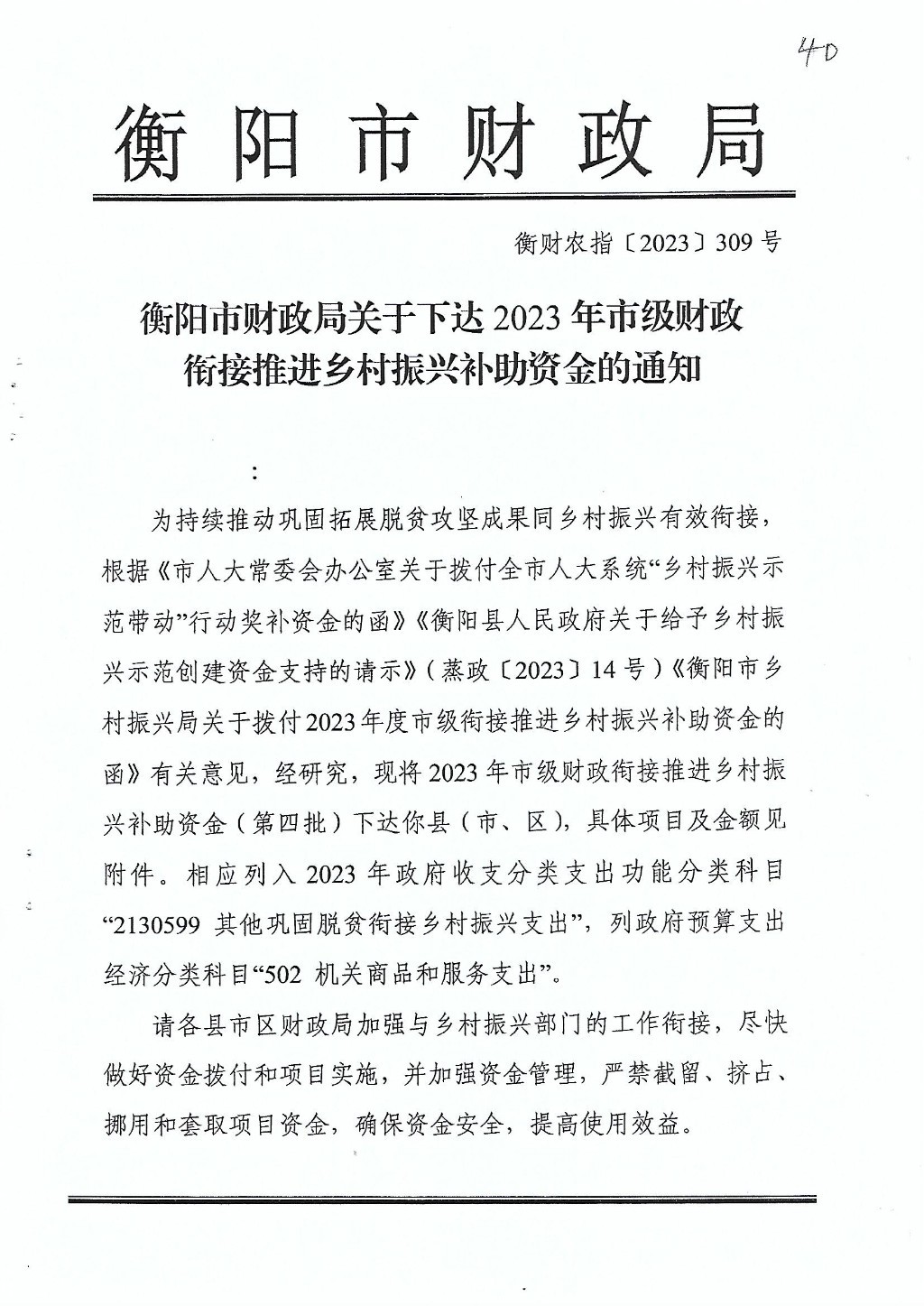 2023年市级财政衔接推进乡村振兴补助资金(第四批)