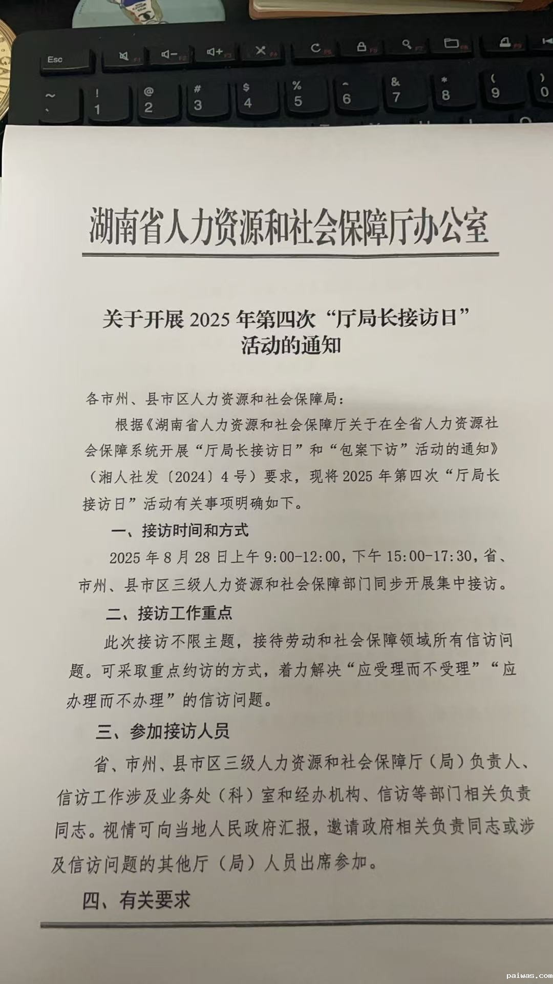 关于开展2025年第四次“厅局长接访日”活动的通知