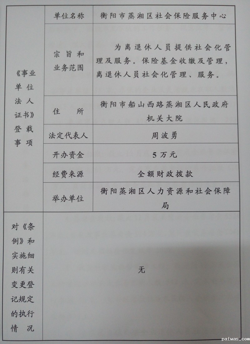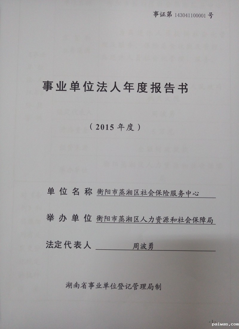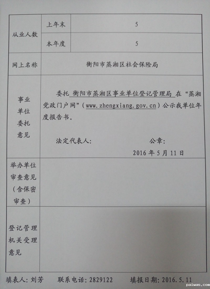 蒸湘区社会保险服务中心事业单位法人年度报告书公示
