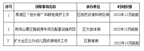 蒸湘区人民政府2022年度重大行政决策事项目录