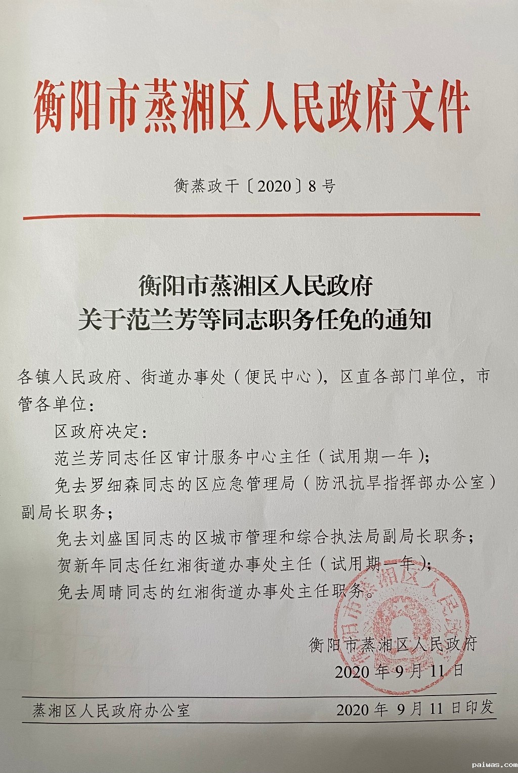 衡阳市蒸湘区人民政府关于范兰芳等同志职务任免的通知