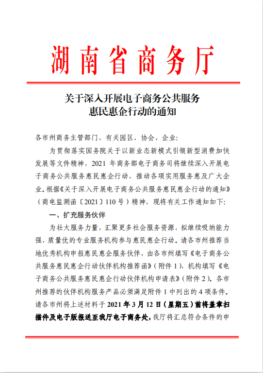 关于深入开展电子商务公共服务惠民惠企行动的通知