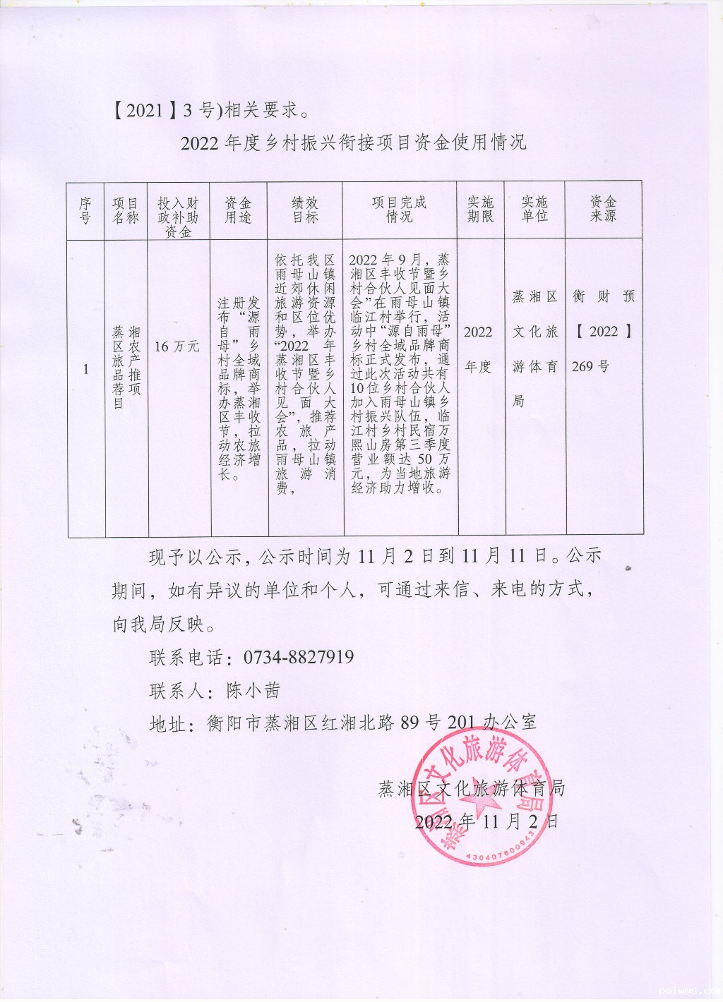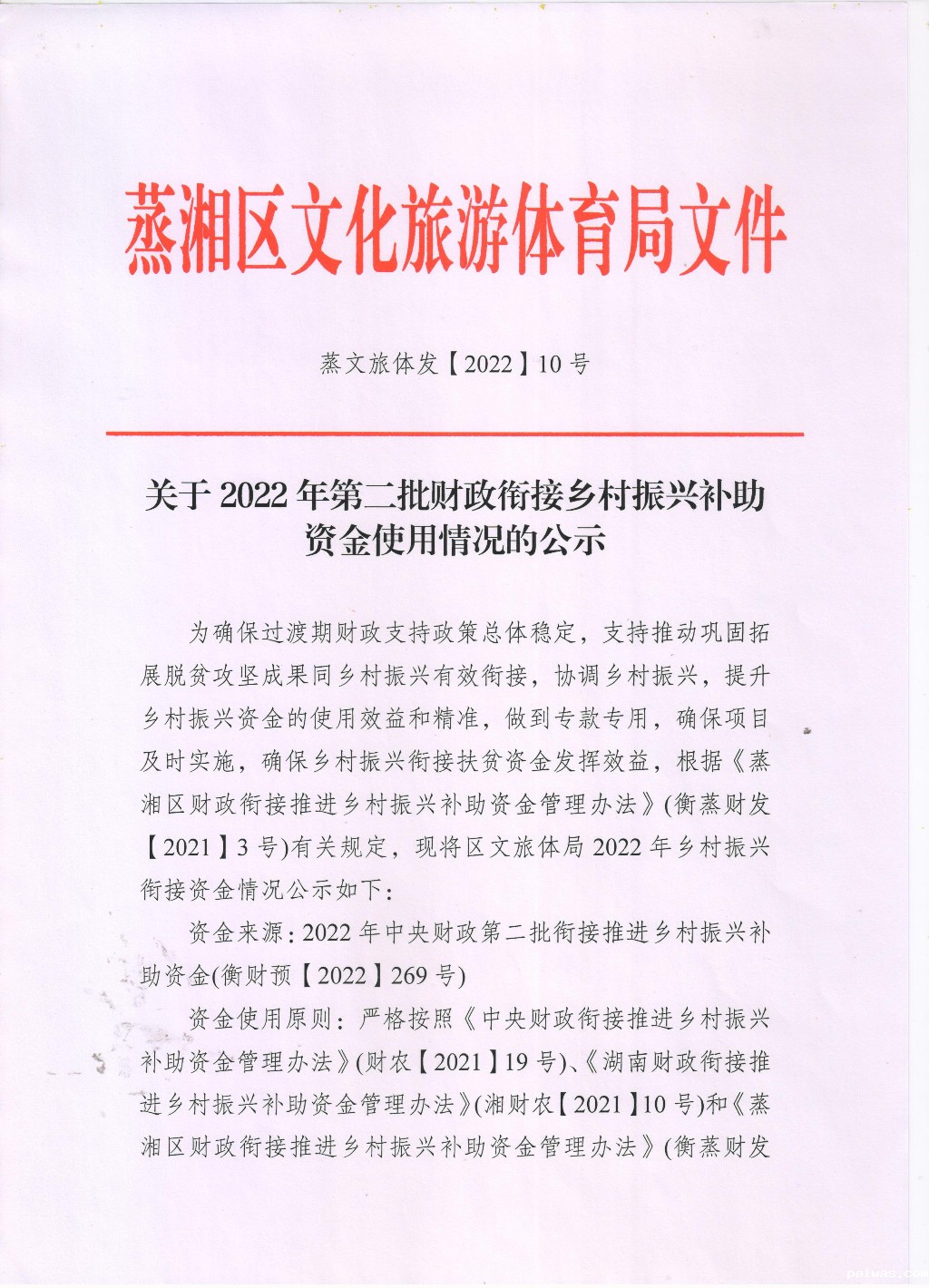 关于2022年第二批财政衔接乡村振兴补助资金使用情况的公示