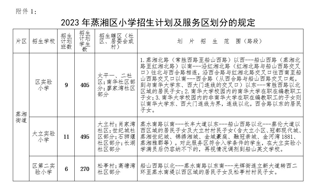 1.2023年蒸湘区小学招生计划及服务区划分的规定