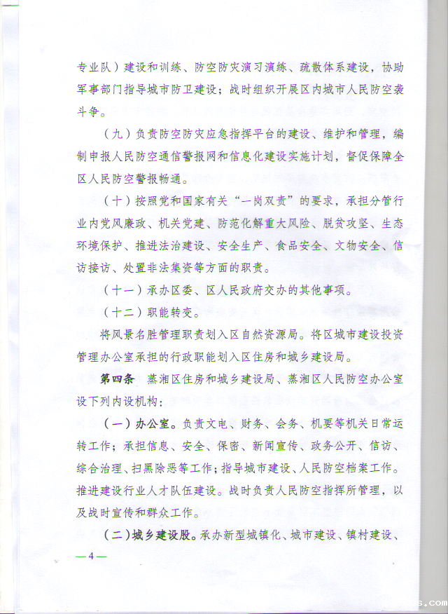 区住建局、区人防办的职能配置、内设机构和人员编制情况