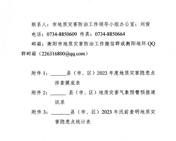 关于做好2023年汛期地质灾害排查工作的通知