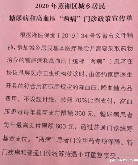 2020年蒸湘区城乡居民糖尿病和高血压“两病”门诊政策宣传单
