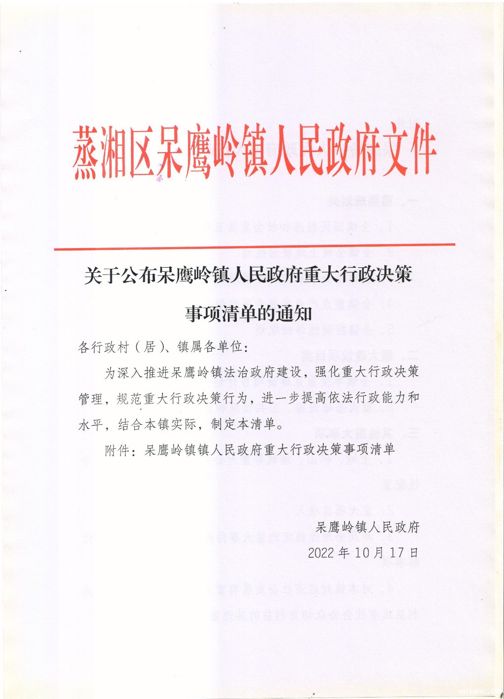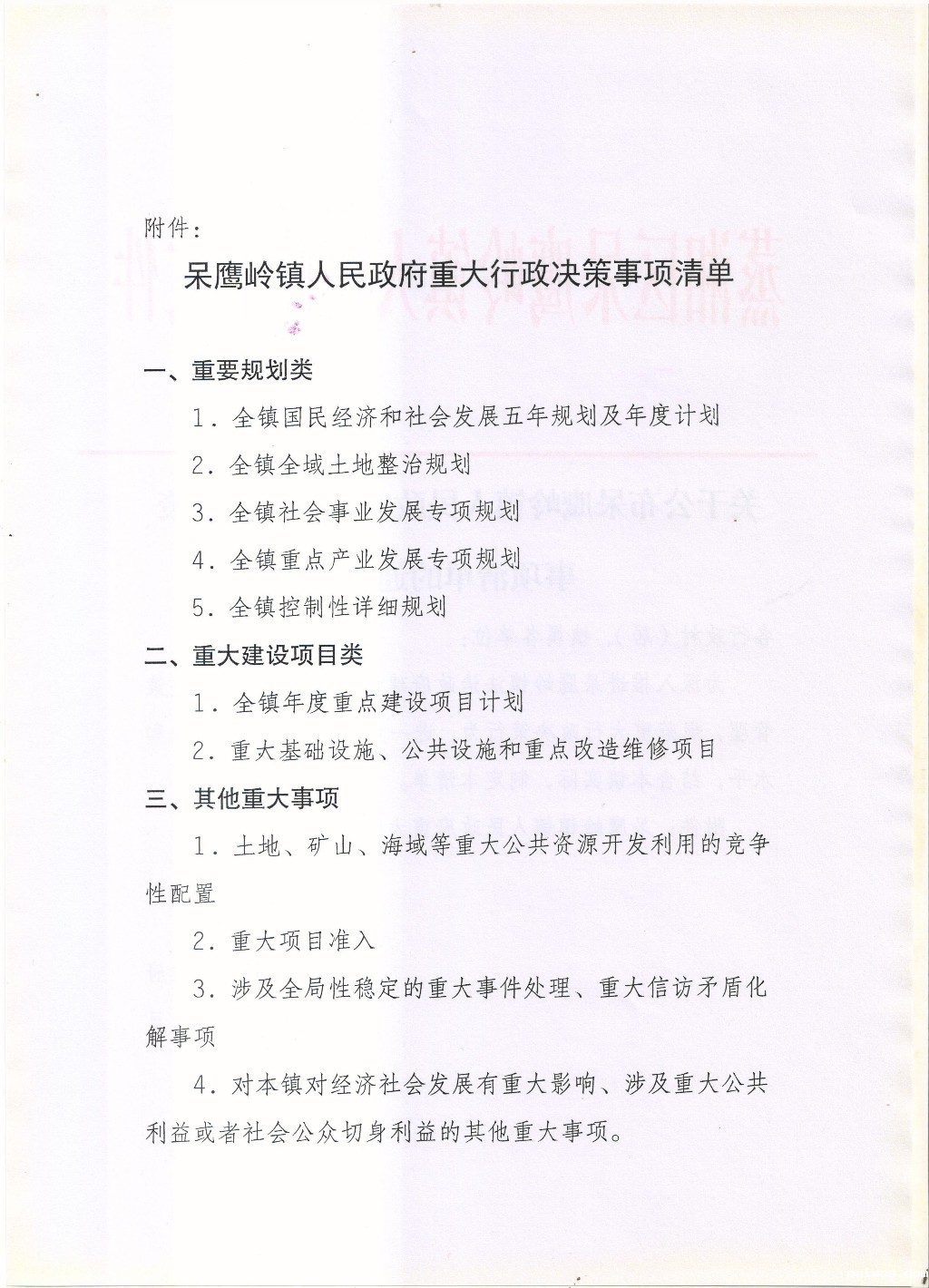 关于公布呆鹰岭镇人民政府重大行政决策事项清单的通知