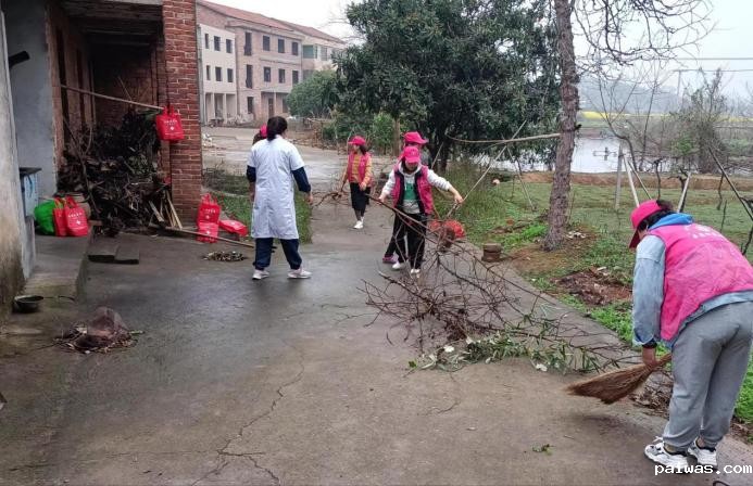 3月8日,新民村妇联组织结合雷锋活动月,组织妇执委帮助新民村孤寡老人肖祖兰清除卫生死角,整理房前屋后堆物。