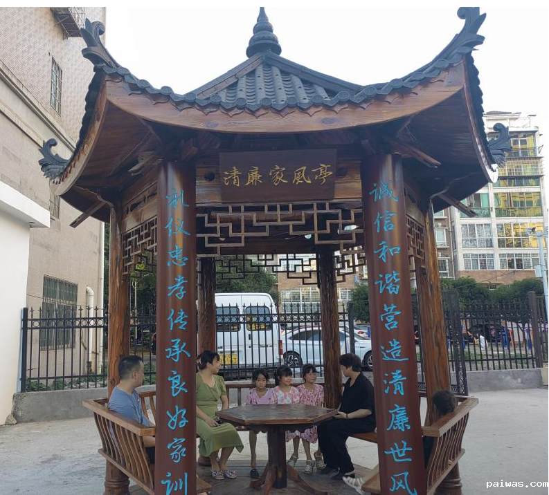 清廉家风亭,传承美德新地标。在社区的绿荫深处,一座古朴典雅的“清廉家风亭”悄然落成,成为了社区内一道亮丽的风景线。家风亭不仅是居民们交流思想、分享心得的温馨场所,更是传承清廉美德、弘扬社会正气的重要阵地。亭门设有清廉家风对联“礼仪忠孝传承良好家训,诚信和谐营造清廉世风”,让居民在休闲娱乐的同时,也能接受到清廉文化的熏陶,它像一座灯塔,照亮着每一位居民前行的道路,引领着大家共同守护这片清廉的净土。