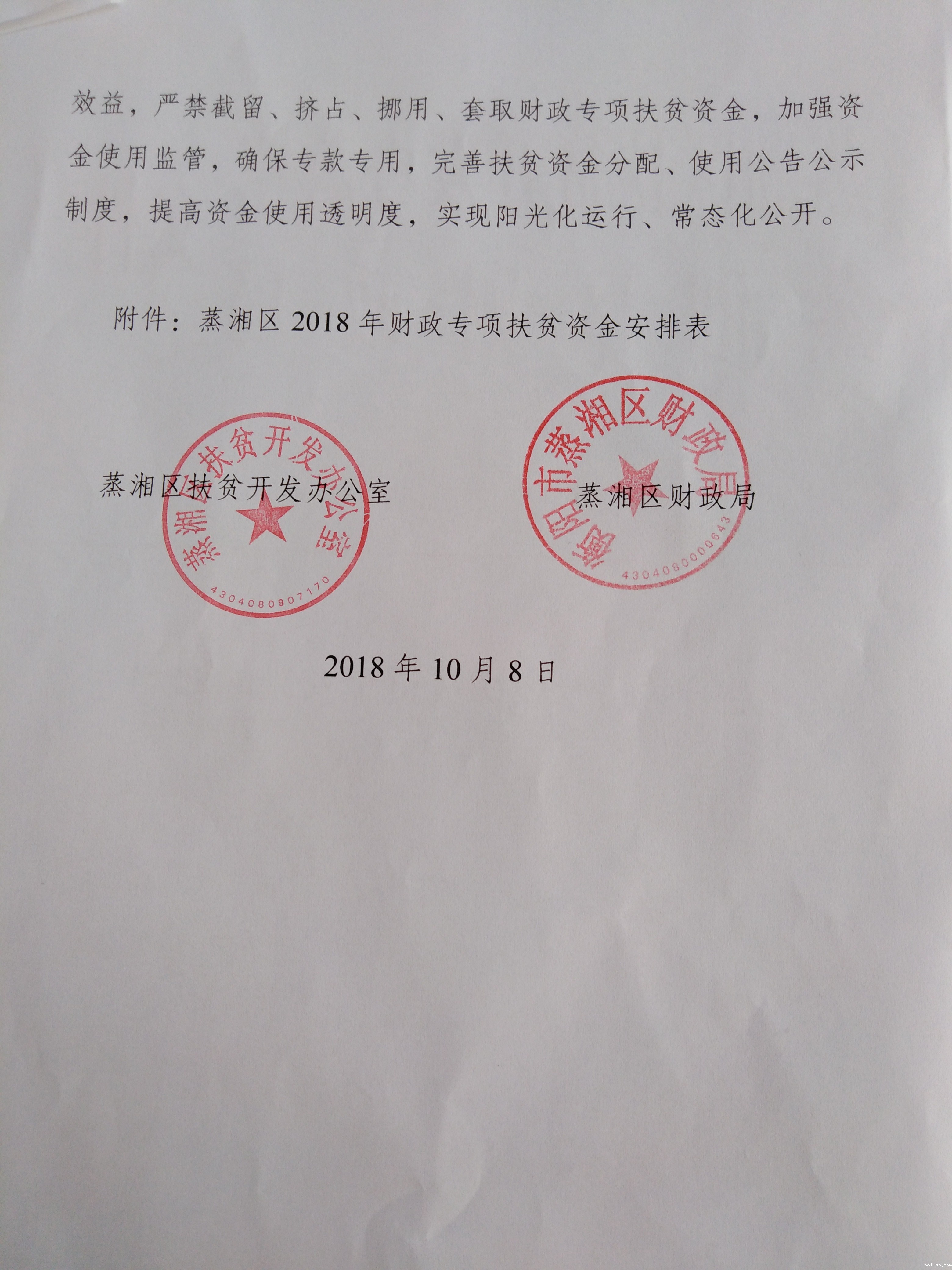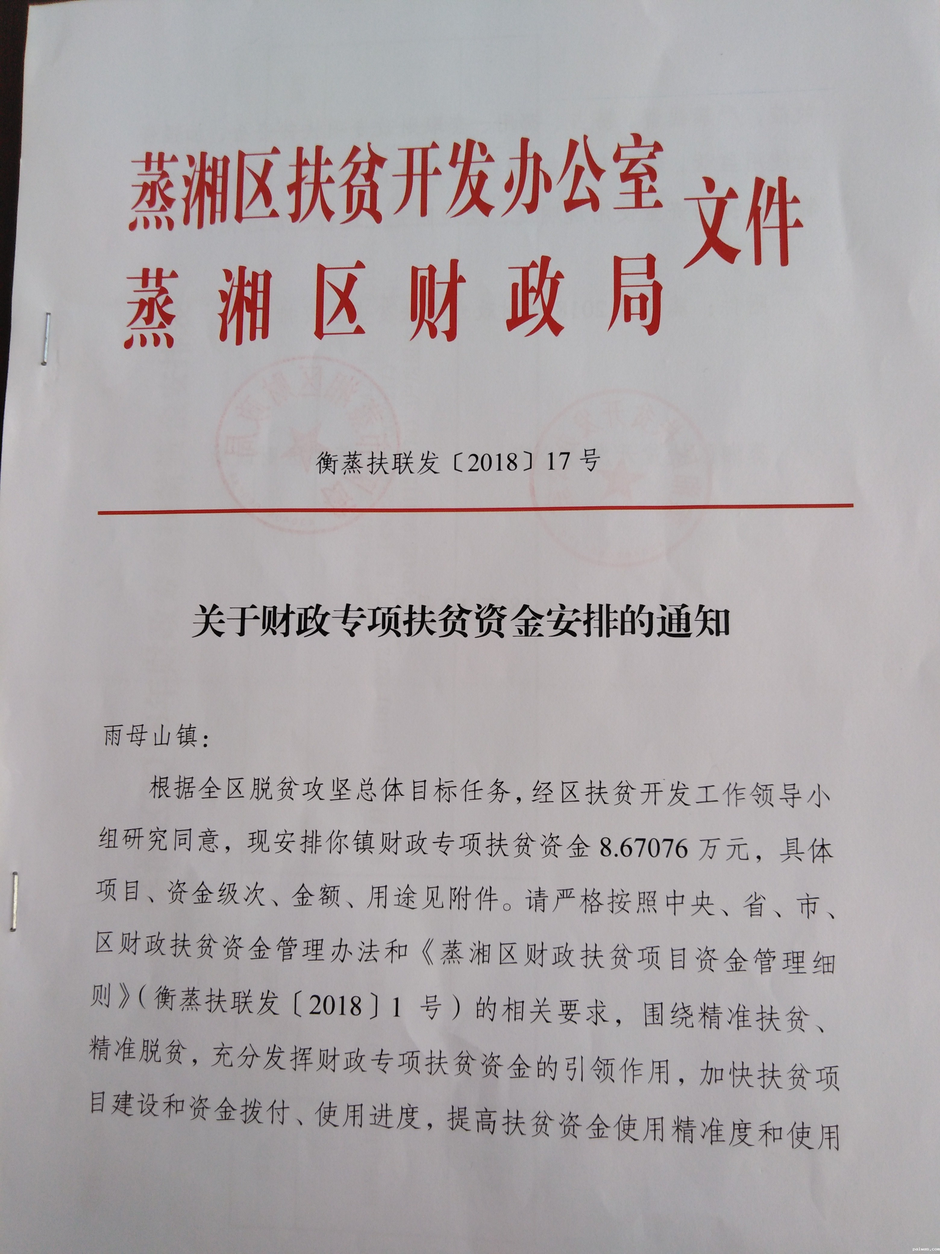 关于财政专项扶贫资金安排的通知(衡蒸扶联发【2018】17号)