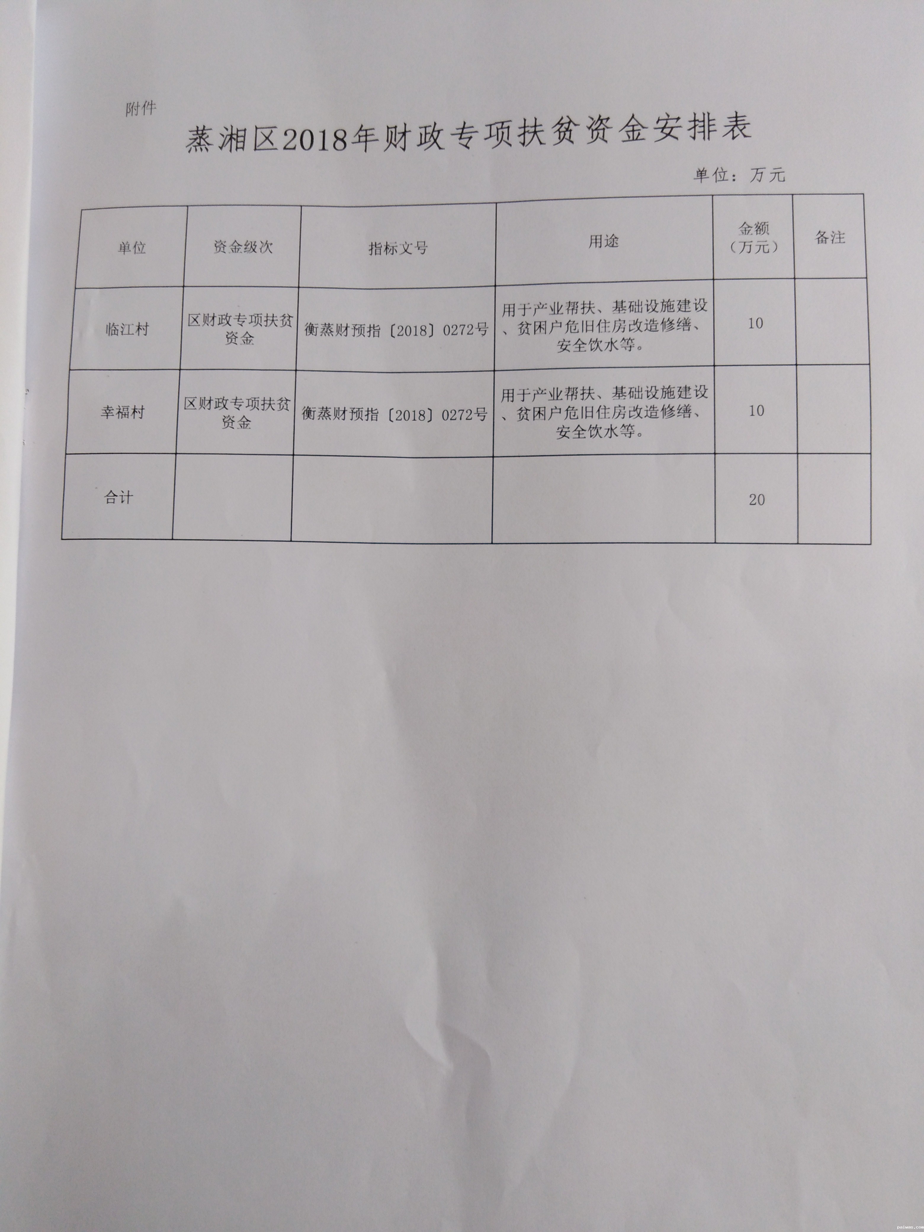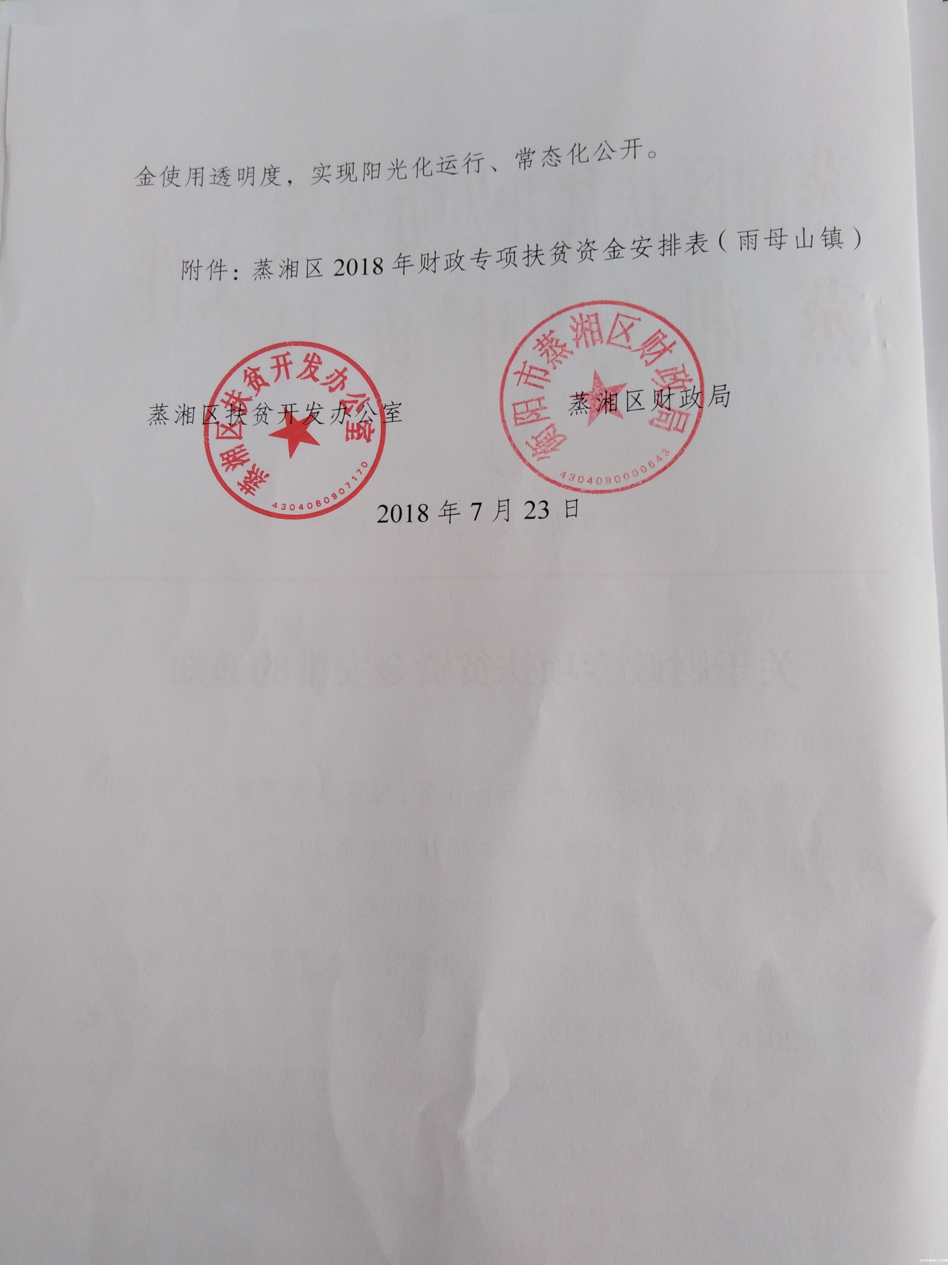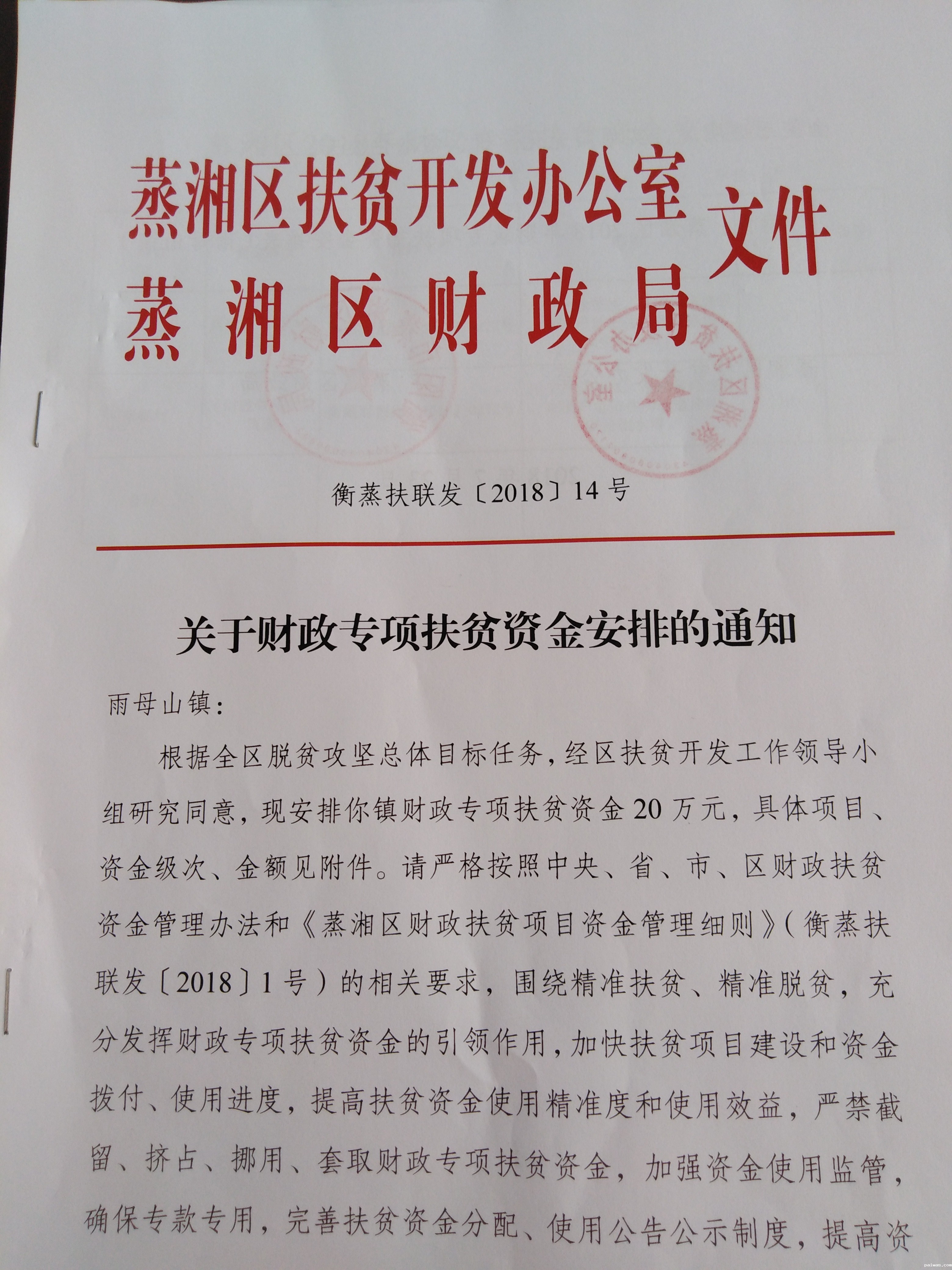 关于财政专项扶贫资金安排的通知(衡蒸扶联发【2018】14号)