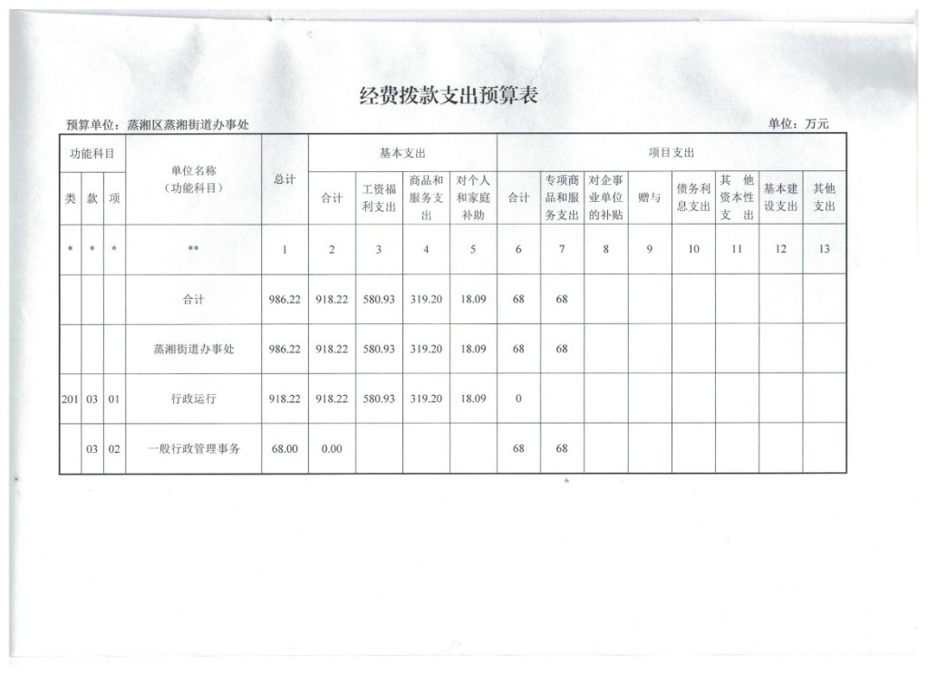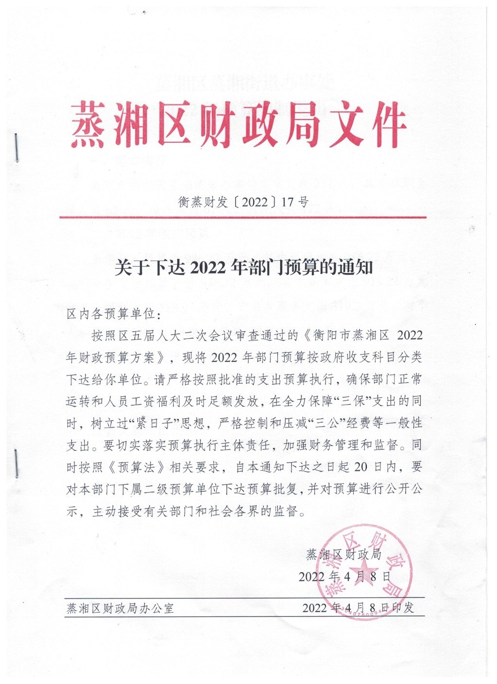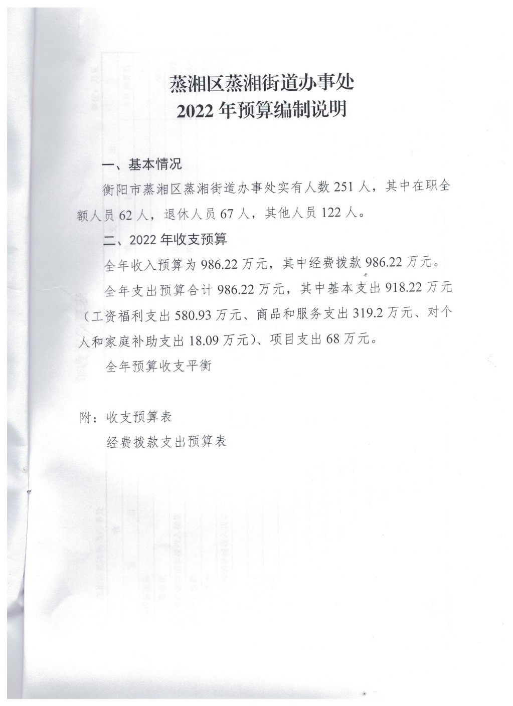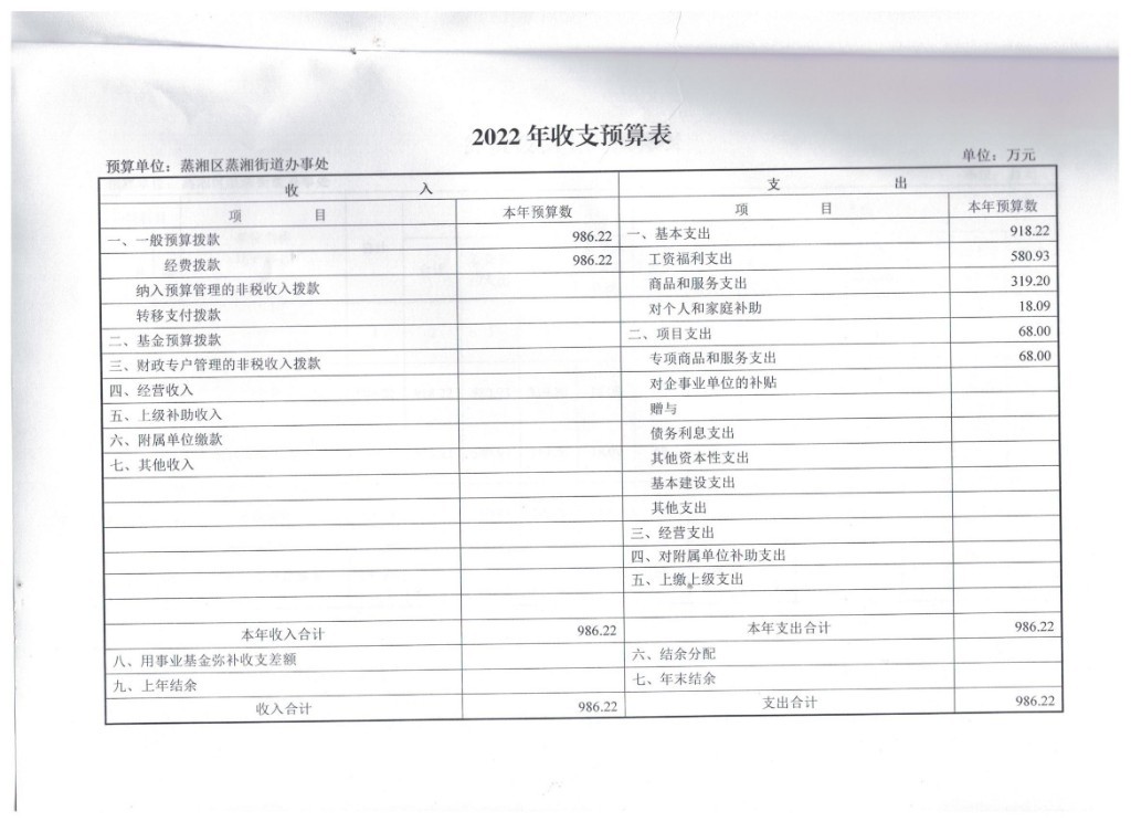 衡阳市蒸湘区蒸湘街道2022年部门预算公开