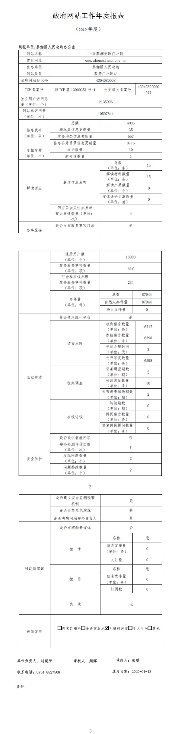 中国蒸湘党政门户网2019政府网站工作年度报表