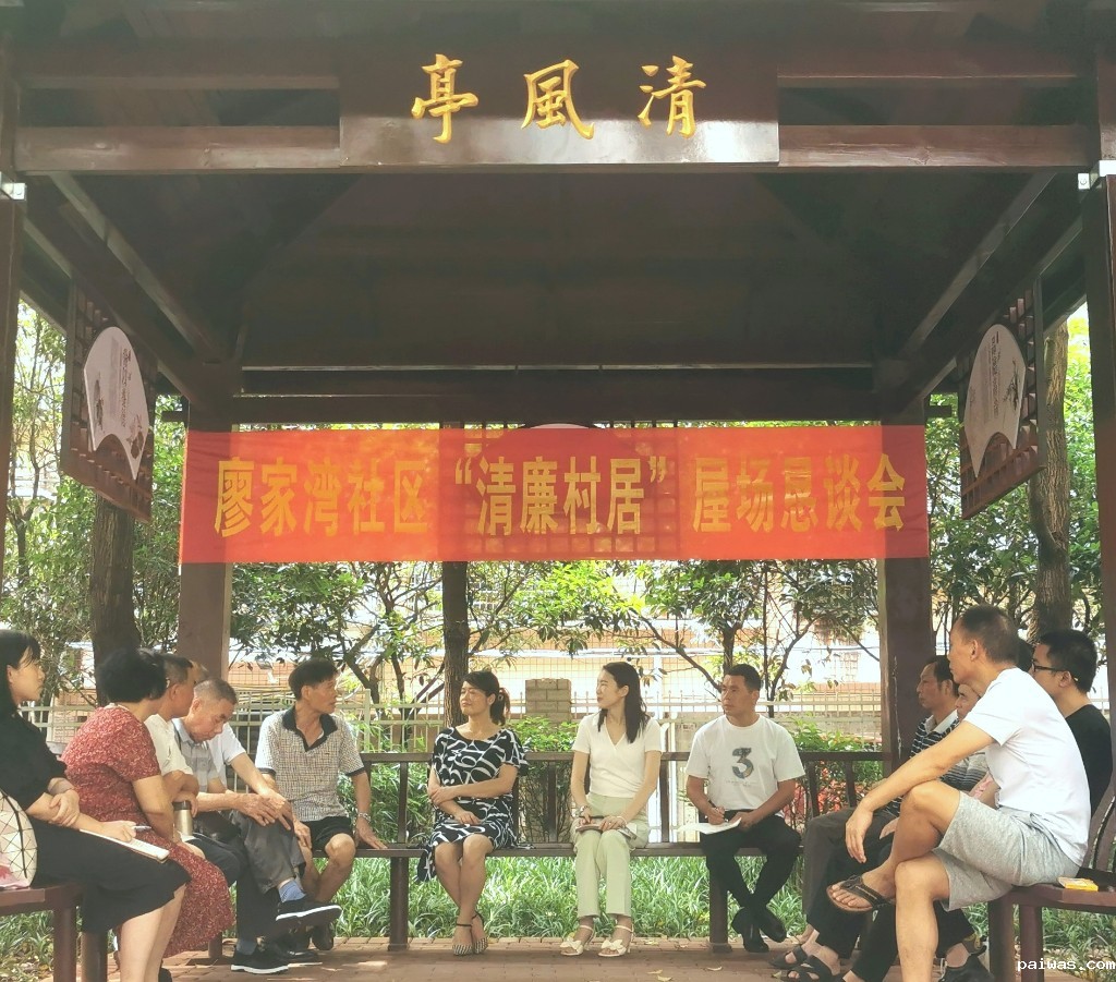 据悉,作为一个城郊结合社区,廖家湾社区有24个开放式小区、5个封闭式小区,社区居住人群结构复杂、居民利益诉求多样,既有小区物业和业委会矛盾问题,也有老旧小区存在的各类问题。为打破治理僵局,廖家湾社区乘着“清廉村居”建设的东风,从今年起,创新推行“线上数字化+线下网格化”双线联动的基层社会治理新模式,线上通过蒸湘区“网上衡阳”监督服务微信群、小微权利“监督一点通”等平台广泛收集意见建议;线下以街道为核心,划分29个村社综合网格,每个网格配备专职网格员主动联系群众,每月定期组织小区物业、业委会、群众和共建单位相聚在该街道的清风方亭内,以实现居民事居民议为目标,共同参与“清风议事厅”征求意见会,对各类问题进行深入探讨交流,以廉力量为乡村振兴保驾护航。