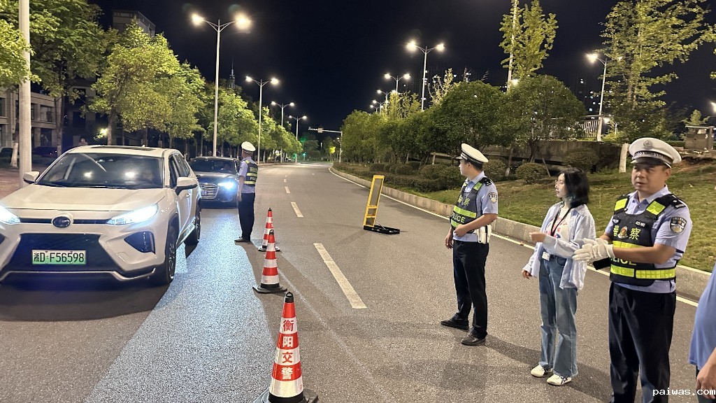 图为蒸湘区纪委监委联合区公安交警部门对过往车辆进行酒驾检查。