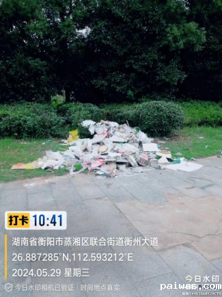 5月29日,我局联合中队接到群众投诉举报,反映有人在衡州大道大衡城邦附近公共绿地内偷倒装修垃圾,联合中队执法人员立即到场协助查处。